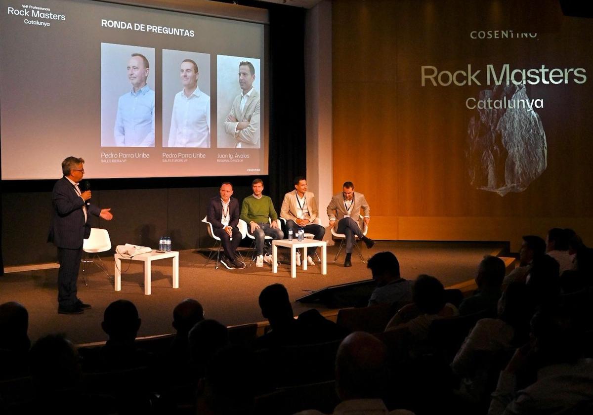 La jornada, inaugurada con una conferencia sobre superación y visión global de los negocios por parte de Paula Fernández-Ochoa, consultora y conferenciante en entornos de alta competición, contó con la participación de diferentes responsables de la compañía almeriense. Con 'Creciendo Juntos', Pedro Parra, VP Comercial para Europa de Cosentino, e Isabel Martínez-Cosentino Ramos, responsable del City de Barcelona y miembro del consejo de administración, realizaron primero esa alabanza hacia las empresas marmolistas por décadas de compromiso y trabajo, así como mostraron algunos ejemplos de la serie de reportajes documentales de 'Rock Masters'.