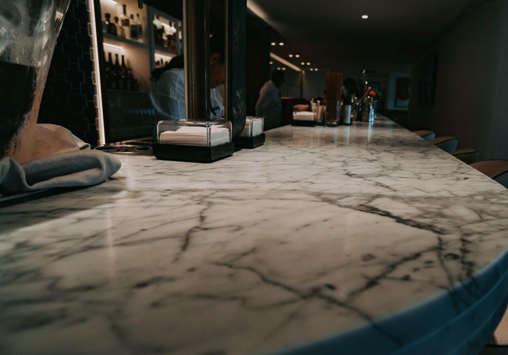 Concretamente, el proyecto destaca por la aplicación de mármoles como Blanco Macael, Calacatta Lincoln, Negro Bambú, Cipollino Multicolor, granito Taurus Gold, Caliza Alba, Grigio Perla, Pietra Santafiora y diferentes semipreciosos, como Withe Quartz, Agata Thera y Crystal Quartz.