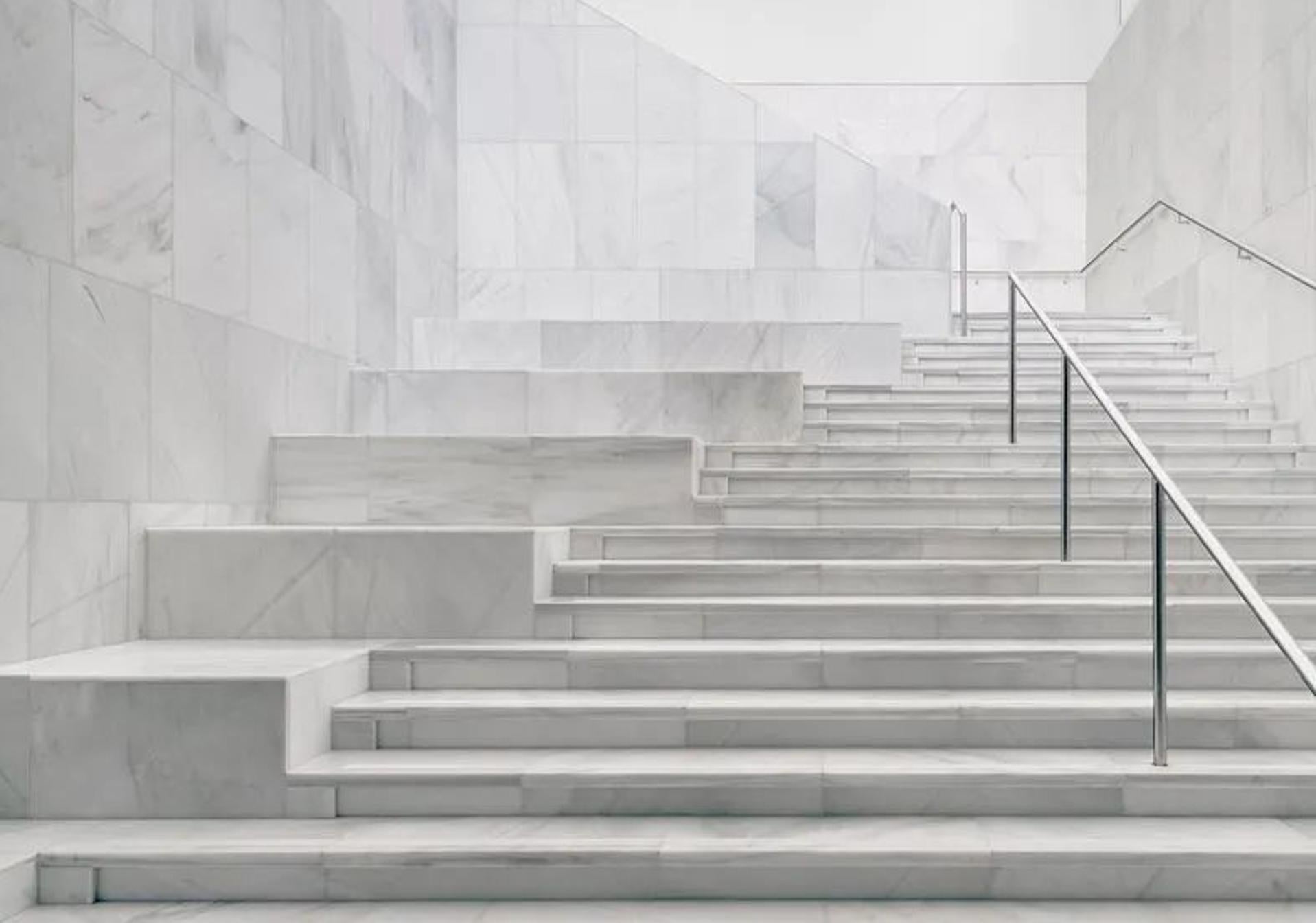 La luminosidad del mármol blanco junto con la filtración de luz a través de las cristaleras favorece la eficiencia de sistemas de control climático diseñado por los arquitectos.