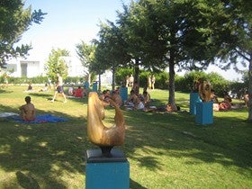 La escultura de Bruce Cameron toma el sol en la piscina de Oria