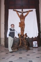 El cantoriano Diego Simón expone en la iglesia local su obra 'El Cristo de la Merced' tallada en madera de olivo de una sola pieza
