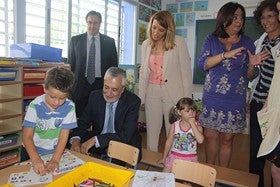José Antonio Griñán ha inaugurado curso y centro en el CPR 'Alto Almanzora' de Cela (Lúcar), donde ha estado acompañado por el acalde de la localidad, José Antonio González, ediles de la comarca y numerosos representantes institucionales. En este centro los escolares han resultado los protagonistas de la jornada, no solo por la atención prestada por el presidente de la Junta con sus preguntas y consejos durante el recorrido a las aulas, sino por los mensajes dirigidos por este para que aprovechen "unas instalaciones públicas que son de todos los ciudadanos y, por consiguiente, deben cuidarse también entre todos", subrayaba Griñán en un discurso cuyos destinatarios eran los vecinos de Lúcar y los escolares de este municipio.