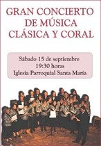 Concierto de Música Clásica y Coral, el sábado 15 de septiembre A las 19:30 horas En la Iglesia Parroquial Santa María de Tíjola