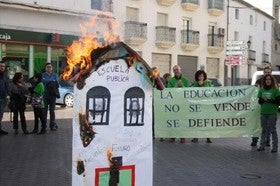 A las 10 de la mañana ha partido una marcha desde la puerta del colegio de Purchena hasta el ayuntamiento y la plaza de la constitución. A la iniciativa de los maestros de la localidad se han sumado los trabajadores municipales y profesores de los institutos de Tíjola, Purchena y Albox. En un ambiente de lucha pero festivo la marcha ha culminado quemando en la plaza de la constitución una maqueta de un colegio simbolizando la muerte de la enseñanza pública y la degradación a la que la actual política de recortes la esta llevando.