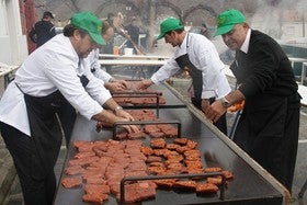 Ya sobre el medio día se empezaron a degustar los embutidos y una paella para mil personas, que se prepara en la misma plaza del pueblo y que ayer finalmente le ganó la partida al temporal y al frío, incluso al granizo que durante media hora le planto cara. La experiencia de Mari Lola, gerente del Hotel Restaurante Las Fuentes, empresa familiar y netamente bacareña, que colabora con el Ayuntamiento en la organización de la Fiesta del Romero tuvo mucho que ver.