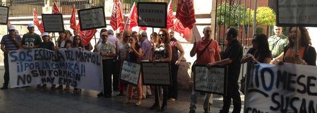 Si el pasado martes día 9 se encerraron en su lugar de trabajo para reclamar los más de 1.400.000 euros que ... les deben, esta mañana han trasladado sus quejas a las puertas de la sede de la Junta en la capital. Con una sonora pitada, insisten en que, además, están teniendo problemas con los proveedores en una escuela en la que tienen que "estar al día" para responder a las "necesidades del sector". "Los proveedores están nerviosos", indicaba un portavoz del colectivo de trabajadores de la Escuela del Mármol de Fines. Justamente hoy, la Consejería de Educación, Cultura y Deporte pública en el BOJA la orden de subvenciones para los consorcios para la formación para el empleo, uno de los cuales es la propia Escuela del Mármol de Andalucía de Fines. "Estudiaremos su contenido", avanzaron los empleados del centro formativo, que fueron apoyados por los sindicatos en su reclamación. Toda la información más detallada, mañana en la edición impresa de IDEAL