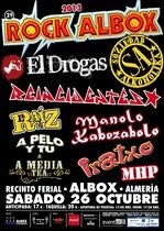 El 29º Festival de 'Rock Albox' abrirá sus puertas a las 17.00 horas y media hora más tarde, el grupo MHP será el primero en pisar el escenario. Sobre las 18.15 horas se tiene prevista la actuación de Iratxo, a quien le seguirá Manolo Kabezabolo. Dos de las actuaciones más esperadas serán, sin dudas, las que estarán protagonizadas por el conocido como 'El Drogas' (20.50 horas) y el legendario grupo 'Soziedad Alkohólica' (22.20 horas). A continuación, el escenario será tomado por 'Reincidentes' (00.00 horas); La Raíz (01.35 horas) y 'A pelo y tu', que se encargarán de despedir el festival rockero.