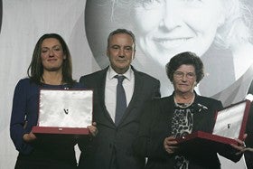 Precisamente en sus palabras se reflejaba el sentir de esos trabajadores, empresarios y vecinos de estos municipios que aman su tierra y desean sentirla ... fortalecida de nuevo para darles cobijo y trabajo a todos los que en ella deseen quedarse. « Cada pieza, cada encimera, cada fachada o monumento ha surgido de la piedra de la cual todos formamos parte y en ella nos reflejamos», indicaba Arriaga antes de dar la bienvenida a la entrega de galardones. La de esta edición ha querido transmitir a un pueblo, Macael, reflejo de todos su habitantes y de las personas que por esta zona pasan, han pasado y pasarán: «Macael. su reflejo en cada uno de nosotros». «No somos una comarca reciente, llevamos años de historia a nuestras espaldas y este conocimiento adquirido ha ido pasando de generación en generación, dando lugar a lo que hoy somos: un referente de la piedra en el mundo», recordaba la presentadora. En esta edición la entrega de galardones comenzada con un reconocimiento a titulo póstumo a dos presidentes ausentes; José González López, en el periodo 1977-1983 y Serafín Sabiote Navarro, en el periodo 2000-2003. «Por su esfuerzo, trabajo, compromiso, reconocimiento a una forma de ser y de vivir». En este emotivo homenaje, la entrega del galardón la realizó Francisco Martínez Cosentino, por ser el presidente mas antiguo en vida y lo recogieron, Marisol García Marín, esposa de José González, y Carmen Sabiote, hija de Serafín Sabiote.