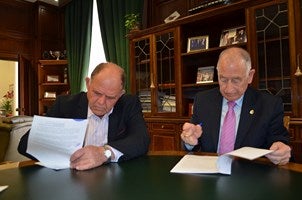 El Ayuntamiento de Cantoria ha asumido la ejecución directa las obras del proyecto 'Urbanizaciones' que va a ser financiado con cargo a los Planes Provinciales de Inversión Municipal (2012) de la Diputación Provincial. Así lo estipula el convenio de colaboración que han firmado entre ambas instituciones para que el Consistorio pueda llevar a cabo los trabajos con los que se finalizarán casi 200 metros lineales de travesía. El acto ha contado con la presencia del alcalde, Gaspar Masegosa, y el presidente de Diputación, Gabriel Amat.