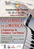 Un años más, la Asociación de Vecinos 'La Loma' de Albox, ha organizado la séptima edición de la 'Semana de la Música' que, además, estará complementada con la exposición de cerámica 'Los Puntas'. Las actividades programadas se desarrollarán desde el día 31 de mayo al 8 de junio. Los conciertos tendrán lugar a las 20.45 horas en la Plaza San Francisco o en la Iglesia de la Concepción; mientras que la exposición se podrá visitar en el salón parroquial en horario de 18.30 a 20.00 horas.