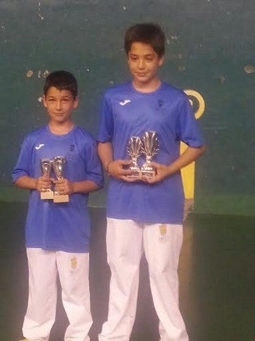 La pareja de alevines de Tíjola compuesta por Antonio Pordoy Marín de 12 años y José Manuel López Machado de 8 años de edad, han ganado el campeonato provincial de frontenis federado que ha organizado la Federación Almeriense de Frontón, quedando a su vez, subcampeones en la modalidad de palas. Ambos títulos los consiguieron tras jugar la final de las dos competiciones que se jugaron el pasado sábado 2 de mayo en el frontón Andarax de Almería. Ganaron en la modalidad que más se práctica en la localidad, y estuvieron a poco de dar la sorpresa también en palas, modalidad nueva para ellos.