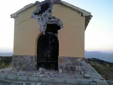 Un rayo destroza la ermita de la Virgen de Lourdes en la Rosariera (el Layón), término de Bayarque y Bacares