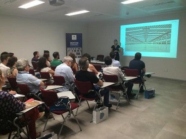 Los asistentes completaron la visita con una presentación del proyecto arquitectónico del Edificio Cajamar, llevada a cabo por el arquitecto de la obra, Alfonso Monje de Pro del Estudio Arapiles Arquitectos Asociados. El nuevo Edificio del Grupo Cajamar fue inaugurado este mismo año, y para la obra se contó con más de 5.000 metros cuadrados del nuevo material Dekton® by Cosentino, utilizado en diferentes aplicaciones como fachada ventilada, solería interior, pavimento exterior, revestimientos de paredes, escaleras, ascensores y aplacados de baño.