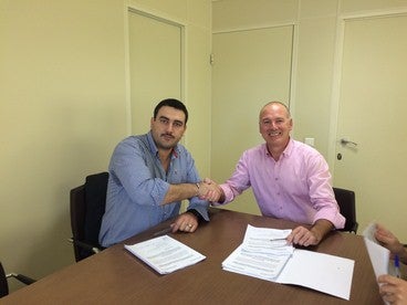 Joaquín Jiménez firma con el alcalde del municipio el acta de cesión de esta infraestructura, que se encuentra en un estado óptimo de conservación