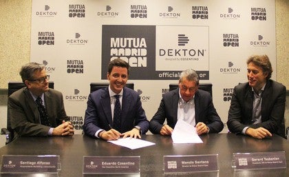 Dekton®, la superficie ultracompacta de Cosentino para el mundo de la arquitectura y el diseño, ya forma parte del Mutua Madrid Open. En un acto celebrado hoy en la Caja Mágica en el que han estado presentes el CEO y Presidente del Mutua Madrid Open Gerard Tsobanian, el Director del torneo Manolo Santana y Eduardo Martínez-Cosentino Alfonso, Director Comercial Global de Grupo Cosentino, se ha rubricado el acuerdo mediante el cual la marca de Cosentino se ha convertido en patrocinador oficial del único evento ATP World Tour Másters 1000 y WTA Premier Mandatory que se celebra en Europa de manera combinada.