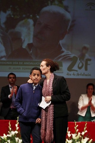 Un emotivo acto, al que asistieron vecinos del Almanzora y familiares de Torreblanca, en el que la institución otorgaba la mención con las siguientes ... palabras: "El patrimonio documental que nos ha dejado Juan Torreblanca, fruto de una rigurosa investigación historiográfica, ha contribuido a romper el silencio sobre la guerra civil y sus consecuencias en esta comarca, con el principio de justicia universal que reclaman los familiares de las víctimas, anteponiendo los valores de la Memoria Histórica al olvido ,y por haber puesto en valor el singular patrimonio minero de la Sierra de los Filabres, símbolo de identidad colectiva en esa etapa de nuestra historia, y que le hacen merecedor de la Insignia de Andalucía. Recoge la insignia, Dña. María Gracia Pozo Oller, viuda de D. Juan Torreblanca Martínez".