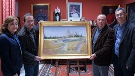 El pasado miércoles 12 de diciembre, en el estudio que el pintor tiene junto al Museo Casa Ibáñez en el que se expone buena parte de su obra y colección artística, Andrés García Ibáñez (Olula del Río, 1971) hacía entrega del cuadro 'Vista de Segovia', uno de los pocos cuadros de la serie 'Paisajes españoles' que aún conservaba el artista en su colección personal, a don Ignacio García Cruz, Hermano Mayor del Paso de la Virgen de los Dolores de Olula del Río.