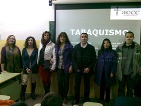 La Junta Local de Olula del Río de la AECC está colaborando con el IES Rosa Navarro en su Semana Cultural. El pasado jueves se celebró el taller "Prevención del tabaquismo en jóvenes", con los alumnos de 2º de ESO. Las ponentes han sido Mercedes Río Suárez (médico anatomopatólogo y Coordinadora de Actividades de la Junta Provincial de Almería de la AECC) y Francesca Villafaña Tudela (psicóloga y Coordinadora del Voluntariado de la Junta Provincial de Almería de la AECC), acompañadas por varias voluntarias de la Junta Local de Olula del Río.