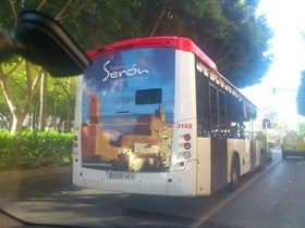 Los autobuses de Almería llevan la imagen de Serón por las principales rutas de pasajeros