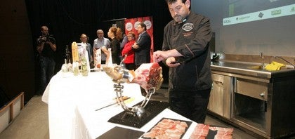 Y en Serón no faltan, ya que hay cinco empresas dedicadas al jamón y cuatro a embutidos, que también ofrecen jamón. Y mientras Pilar hablaba de su empresa, Pedro, el cortador profesional de jamón, deleitaba la vista a los presentes al acto cortando finísimas tiras de una pata de cerdo blanco con una grasa muy repartida que después pudieron degustar en el stand que el municipio de Serón ha instalado en Almería Gourmet.